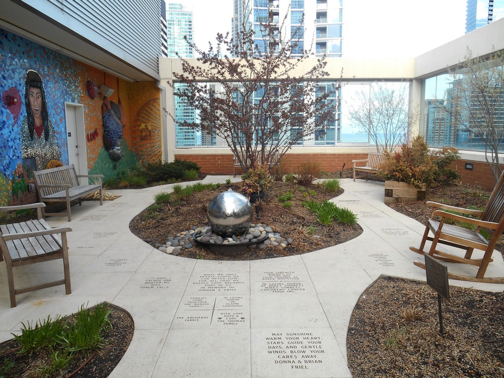 Cet espace a été aménagé par la fondation McDonald pour la santé des enfants, près d’un hôpital pour enfants. Il est essentiellement destiné aux patients et à leurs parents, et associe un jardin (garden rooftop) à une terrasse (terrace) désignée comme lieu de recueillement à la mémoire d’enfants morts de maladie. Cette double désignation traduit la place interstitielle de ces espaces dans les imaginaires collectifs urbains, qui peinent à leur assigner un nom fixe.
