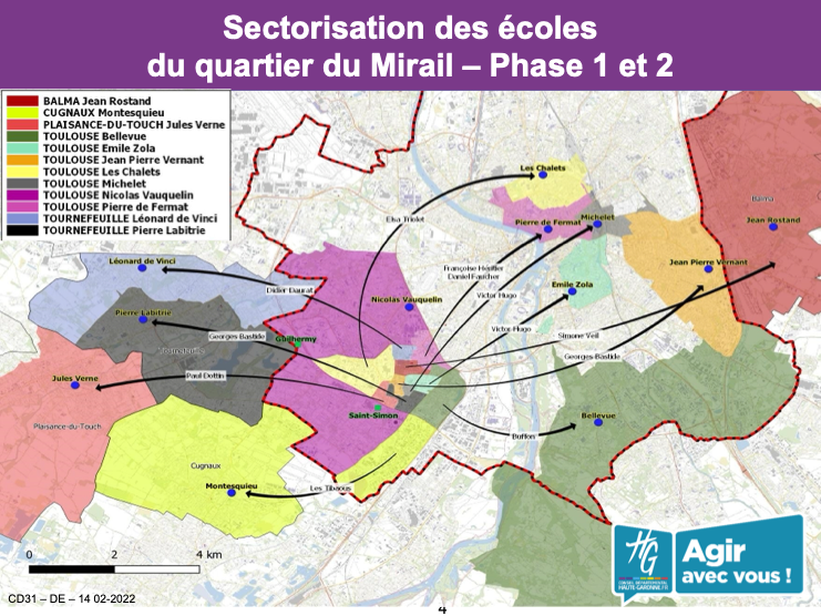5. Sectorisation des écoles du Mirail dans leurs nouveaux collèges d’affectation (Conseil départemental de la Haute-Garonne, 2022)