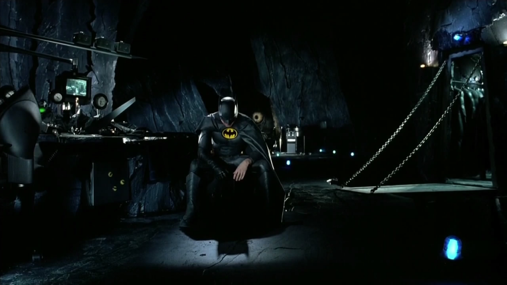 « I come from… like you », dit le Pingouin au personnage incarné par Christopher Walken dans Batman, le défi (Tim Burton, 1991). Les deux hommes se trouvent dans le repaire du Pingouin, un vaste espace ovoïde, sous la ville de Gotham. C’est depuis cet endroit souterrain que le criminel organise ses actions terroristes, tout en espérant un jour rejoindre la société des hommes, qu’il désigne en levant son parapluie vers le plafond qui lui sert de ciel. Oswald Cobblepot, dit le Pingouin, enfant si laid que ses parents l’abandonnèrent dans les égouts, n’aspire qu’à une chose : être vu. Attirer les regards. A l’exact opposé, Bruce Wayne, incarné par le très discret Michael Keaton, cherche à tout prix à détourner les regards de son alter ego, le chevalier noir Batman. Tout comme le pingouin, c’est en plongeant dans les profondeurs – de sa Batcave, en l’occurrence – que Bruce Wayne peut, à l’abri du monde extérieur, mener sa lutte acharnée contre le crime. Pour le Pingouin comme pour sa nemesis Batman, tels que les dépeint Tim Burton, l’enjeu spatial est identitaire : rejoindre la ville, c’est quitter l’ombre et pouvoir clamer son appartenance au monde d’en haut, à la communauté des gens normaux. « Like you ».