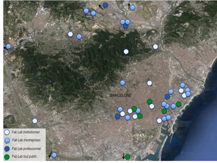 4. Localisation des Fab Labs dans l’aire métropolitaine barcelonaise (R. Besson, Villes Innovations, 2015, droits réservés)