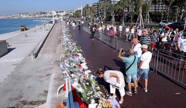 2. La Promenade des Anglais et sa baie des Anges, ponctuée de quelques mémoriaux de fortune (Wehwalt, 21 juillet 2016)
