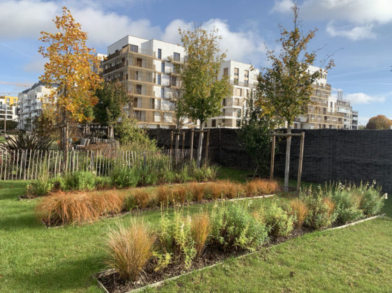Le parc traversant (2,3 hectares) rejoint la place principale du projet, et se situe à moins de 300 m de chaque bâtiment. Il est l’élément structurant de la trame verte du projet, constitué également par des parcelles comprenant au moins 20 % d’espace en pleine terre. Le devenir d’une friche fait par ailleurs l’objet de débats informels en dehors des ateliers de concertation : la RAGP défend l’idée de la conserver pour l’aménager en parc urbain, tandis que la maîtrise d’ouvrage la réserve pour la construction d’une caserne de pompiers d’envergure territoriale.