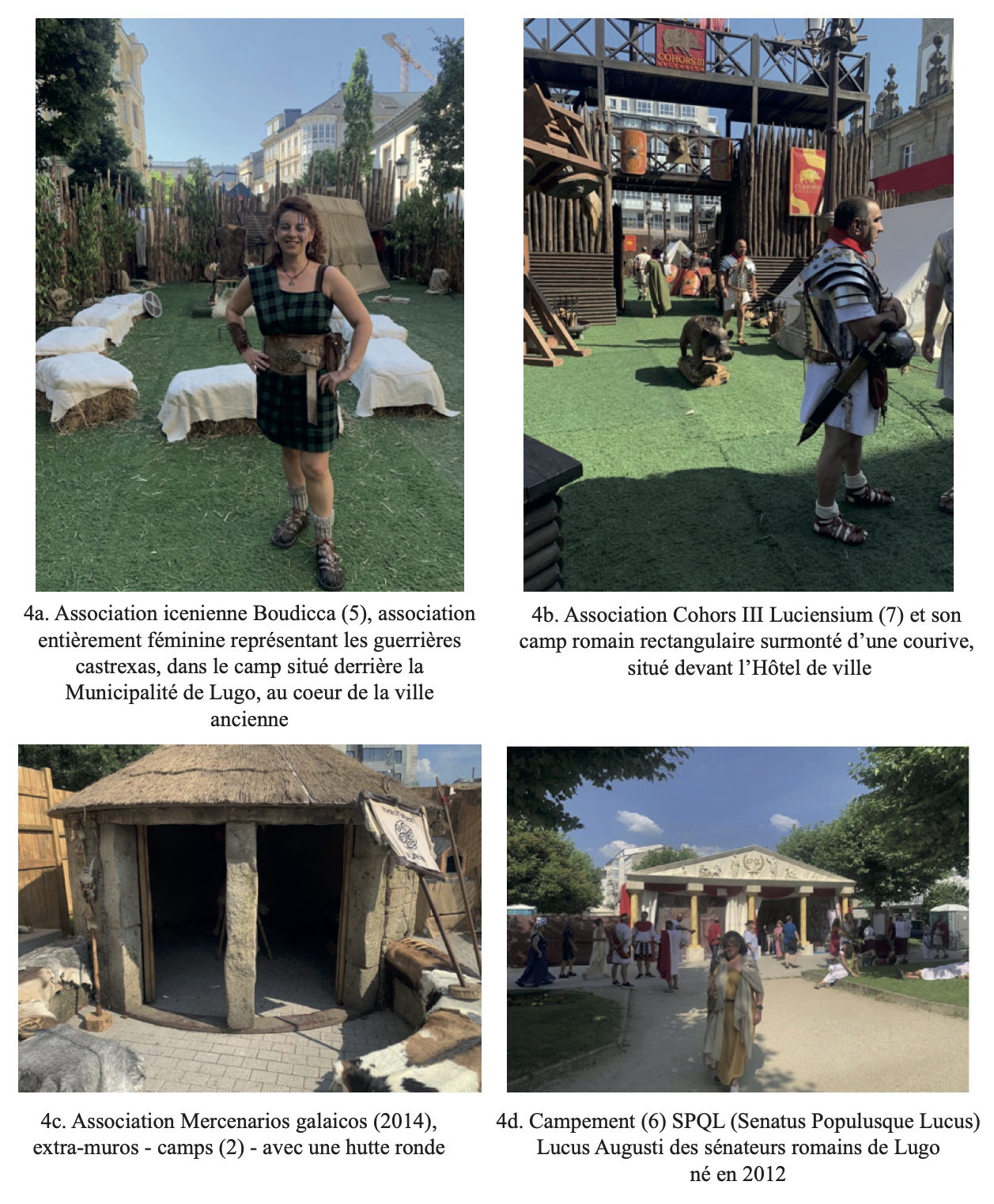 Les 19 associations de reconstitueurs de la ville de Lugo sont plus ou moins récentes et sont toutes nées à la suite de l’inscription de l’enceinte romaine sur la liste du Patrimoine mondial en 2000. Constituées de bénévoles, elles montrent un fort ancrage local, participatif et un attachement à la ville de Lugo et à ses patrimoines archéologiques et historiques. Les associations, présentes sur les réseaux sociaux, ont permis de donner une nouvelle impulsion au tissu associatif culturel de la ville et de renouveler l’engouement populaire, à travers une forte participation habitante, pour l’histoire à travers des évènements festifs de la reconstitution historique (Entretien Municipalité de Lugo, 2022).
