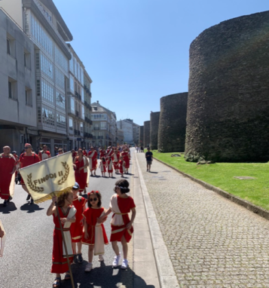 Couverture : Défilé des écoles et des collèges lors du festival Arde Lucus 2023 au pied de l’enceinte romaine, Lugo, Espagne (Elodie Salin, juin 2023)