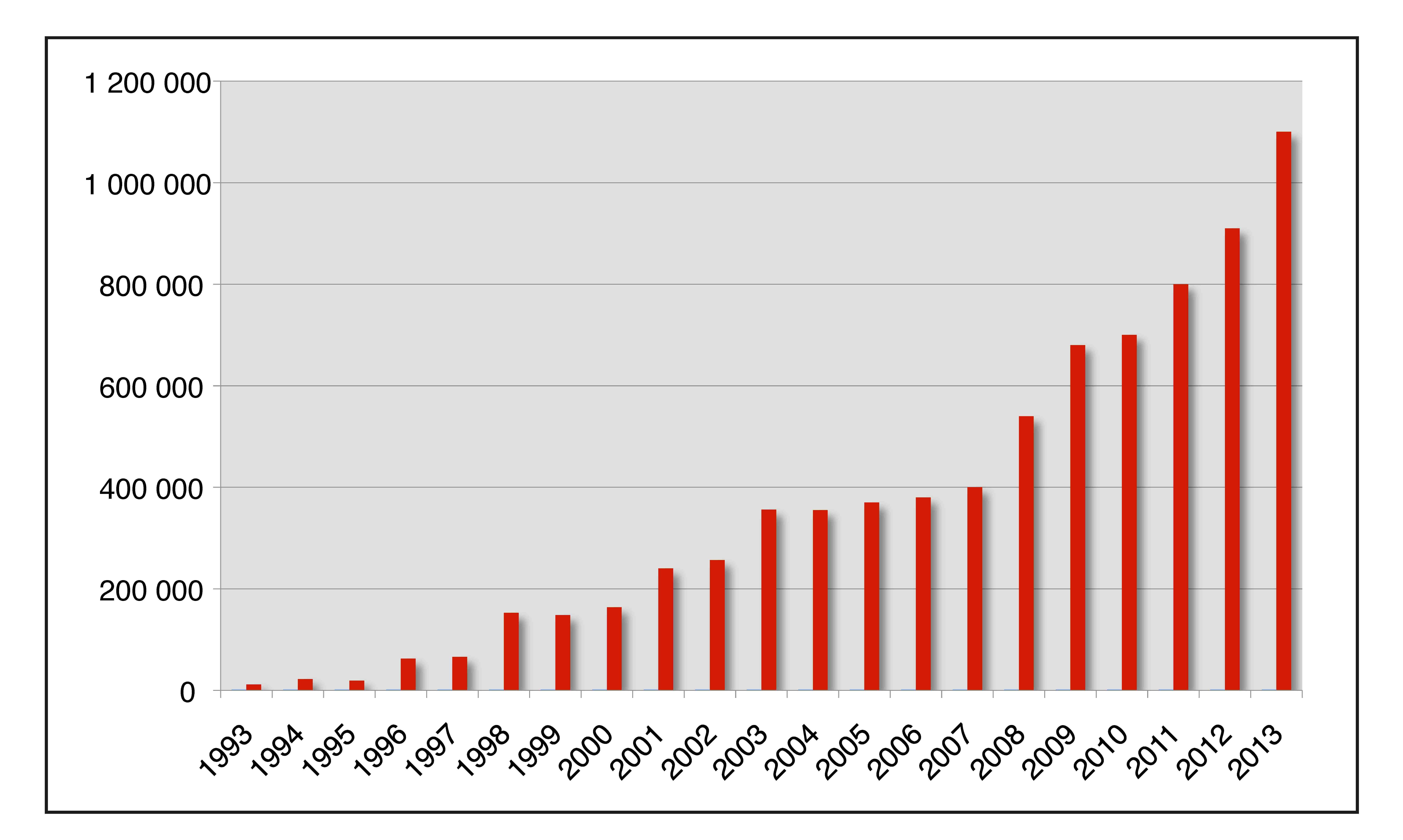 D’une activité insignifiante (il y avait 8 550 passagers en 1992), Marseille a réussi à se hisser à une position dominante sur le marché français (premier port de croisière) et à une place de concurrent au niveau européen. En 2013, Marseille a franchi la barre du million de passagers avec une fréquentation de 1,18 million de croisiéristes. Comme le montre la figure 1, la progression a été régulière depuis la fin des années quatre-vingt-dix, soit quelques années après le début de la politique volontariste des collectivités locales. À partir de 2008, la croissance s’accélère, passant à deux chiffres. Les prévisions les plus optimistes tablent sur 1,6 million de passagers à l’horizon 2016 et les chiffres de 2014 sont prometteurs avec 1,35 million de passagers attendus.