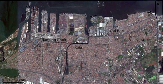 Si la formule peut surprendre, elle reflète effectivement l’évolution des relations morphologiques entre la ville de Jakarta et son grand port de commerce : construit à l’origine en dehors de la Batavia2 coloniale, Tanjung Priok s’est vu, en moins d’un siècle, littéralement submerger par une urbanisation rapide.