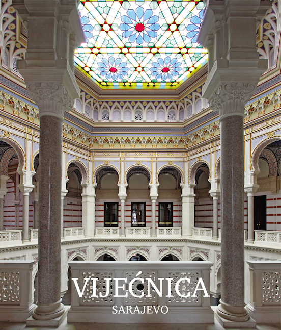 Taïda Skaljic : « c’est une restauration disons « à l’identique« , mais dans ce cas était-il possible de faire autrement ? La destruction du pont de Mostar ou de la Vijećnica était un acte planifié de vandalisme, effaçant les forts symboles de l’identité bosniaque (…). Moi, en tant que personne attachée émotionnellement à cette ville de Sarajevo, et aussi comme architecte, je pense que, dans ce cas, c’est juste de tendre vers une reconstruction complète afin de retrouver cette architecture unique dans son état d’avant les bombardements de 1992 »8.
