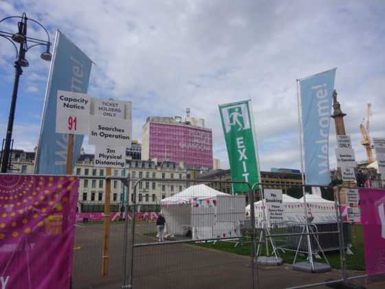 Couverture : entrée d’un événement pendant un festival de théâtre de rue à Glasgow (Séverin Guillard, 2021)