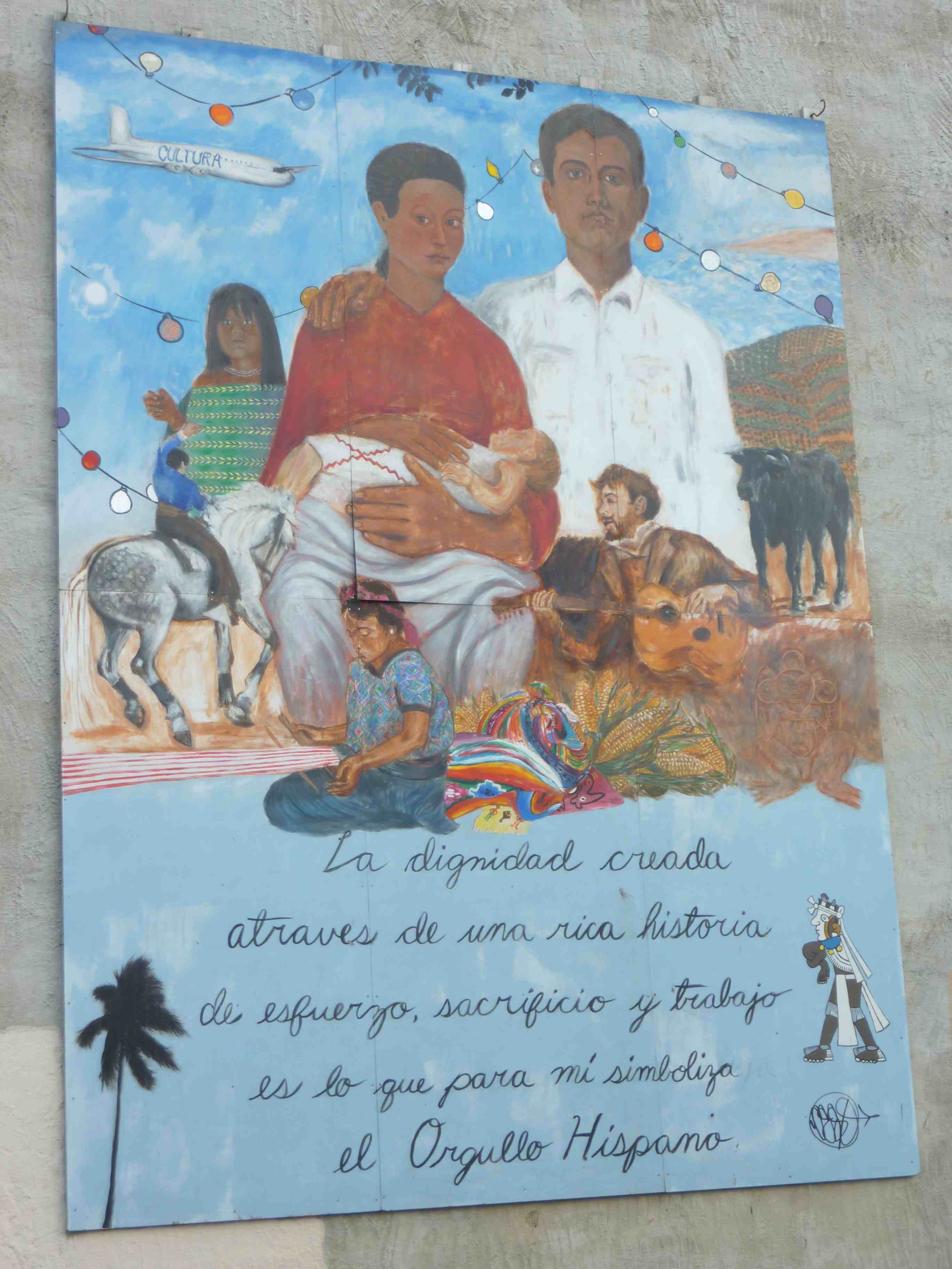 Mural de Eric Monastario (412 South Broadway), 2000. Photographie prise en avril 2012, S. Baffico. « La dignidad creada atraves de una rica historia de esfuerzo, sacrificio y trabajo es lo que para mi simboliza el orgullo hispano ». L’artiste met ici en valeur les épreuves et les efforts d’intégration des immigrés hispaniques installés principalement dans les quartiers de Fells Point et de Highlandtown.