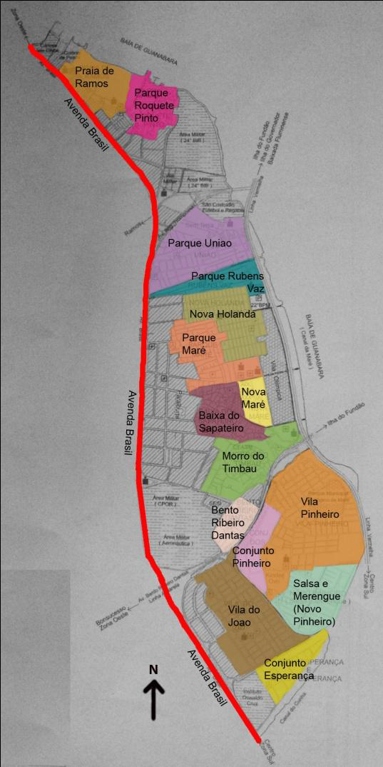 La région est localisée dans la zone Nord de Rio de Janeiro, où se sont implantés les réseaux de voies ferrées depuis la fin du XIXe siècle pour distribuer dans la capitale les produits agricoles et, plus tard, transporter la production industrielle. La Maré est ainsi localisée dans une partie de la ville qui a accueilli la plupart des industries au XXe siècle.