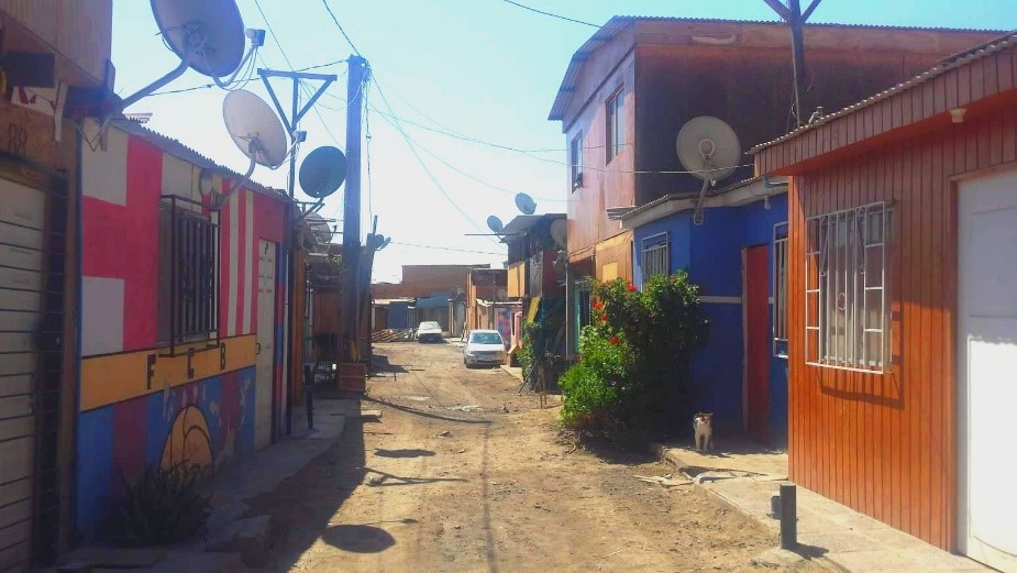 Alors que le Chili devient la terre d’accueil d’un nombre croissant de personnes immigrées venues d’autres pays d’Amérique latine, certaines construisent des zones d’habitat précaire pour pouvoir habiter les villes dans lesquelles elles travaillent. Ainsi, bien que l’État chilien soit parvenu à fortement résorber le nombre de « campamentos » (quartiers informels) dans les années 1990, ces derniers augmentent de nouveau depuis une dizaine d’années, désormais majoritairement habités par des personnes originaires du Pérou, de Bolivie, de Colombie ou d’Équateur.