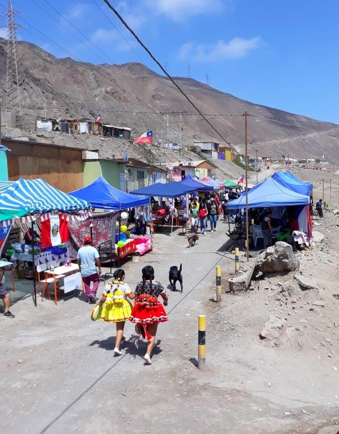 Leurs porte-paroles, en majorité des femmes immigrées, s’attachent à déployer une autre image des campamentos, construite en opposition à celle à laquelle renvoie le « quartier transitoire ». Elles insistent sur la capacité des habitant·e·s à avoir bâti collectivement de « véritables quartiers », dans lesquels on vit « dignement ». Elles revendiquent un droit à habiter la ville, dans l’esprit de celui que définissait Henri Lefebvre (1968) ; elles font valoir que les immigré·e·s contribuent par leur force de travail à la prospérité d’Antofagasta et méritent donc des conditions d’habitat dignes – leur permettant de vivre avec autonomie et non « en prison ». Pour protester contre le déplacement, de grands carnavals andins ont été organisés dans le campamento Balmaceda. Ils visent à célébrer le foisonnement culturel d’une « communauté » rassemblant des personnes originaires de toute l’Amérique latine, et de donner à voir à quel point il peut aussi s’agir d’une « richesse », selon les mots de Blanca Camuendo, l’une de leurs porte-paroles.