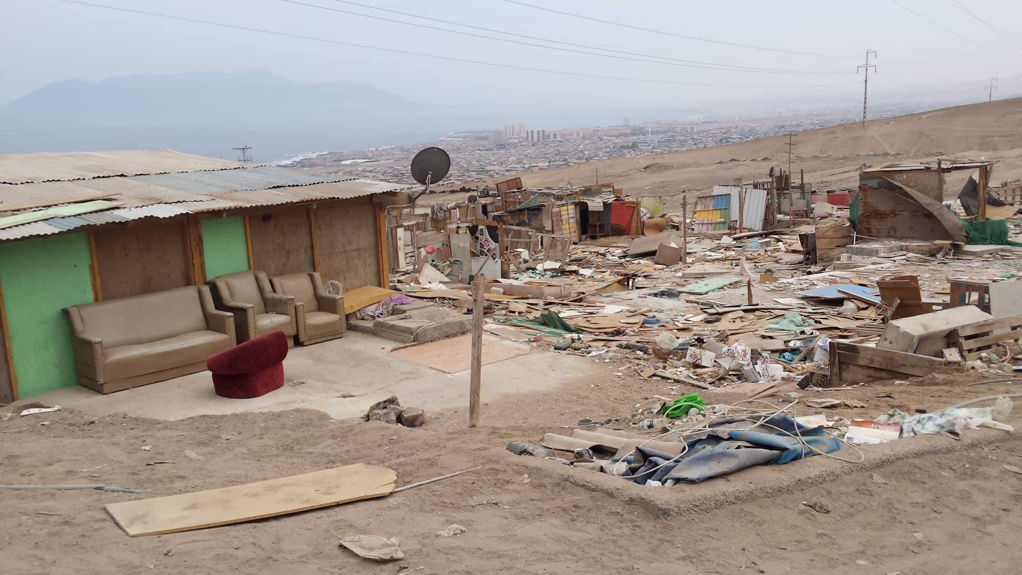 Après la capitale Santiago, les régions accueillant le plus grand nombre d’immigré·e·s sont celles du nord du pays, situées dans le désert d’Atacama. Cela s’explique par la proximité des frontières péruvienne et bolivienne, mais aussi par le dynamisme économique généré par d’importantes exploitations minières. Antofagasta, peuplée de 360 000 habitant.e.s, « capitale » de cette industrie minière, est la ville du Chili ayant connu la plus forte résurgence des campamentos. L’un d’entre eux a été construit sous des lignes électriques à haute-tension.