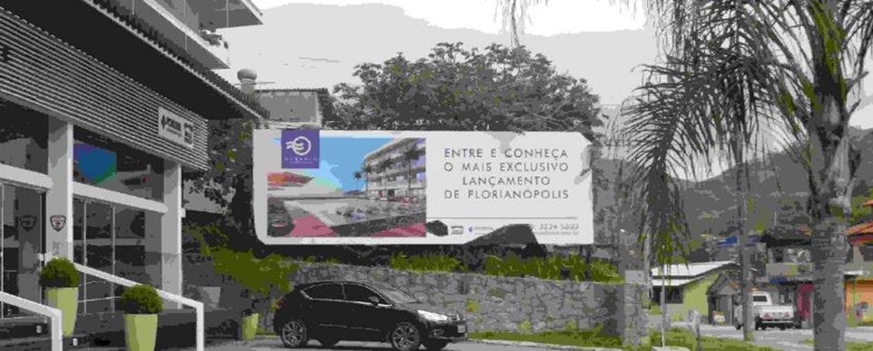 2. Une publicité qui propose de « faire connaissance avec l’inauguration la plus exclusive de Florianópolis », illustrant l’usage positif de l’idée d’exclusion, à Lagoa da Conceição, Florianópolis (autrice, janvier 2016).