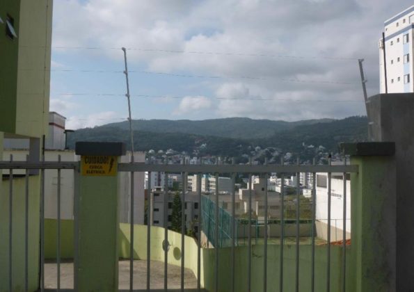 Image de couverture : la vue depuis la grille surmontée d’une clôture électrifiée d’un immeuble modeste de la rue José Joao Martendal, à Florianópolis (Moret, 2015).