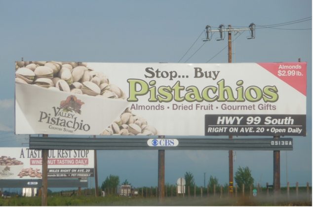 Couverture : panneaux publicitaires pour les boutiques de fruits secs et d’amandes dans la Vallée Centrale, entre Merced et Fresno (C. Ruggeri, 2013)