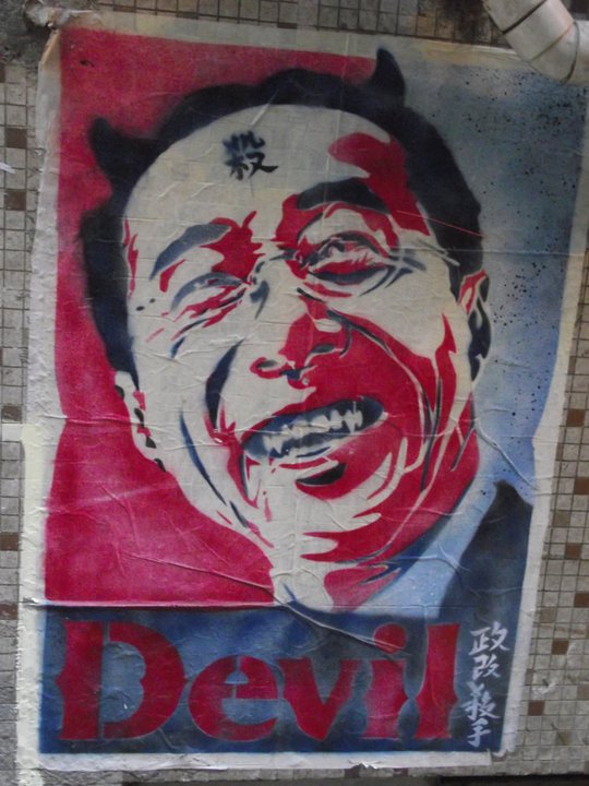 1. Affiche placardée dans les Mid Levels (Central) représentant Henry Tang, Secrétaire général des finances de 2003 à 2007 et Chef de l’exécutif par intérim en 2005, éclaboussé par un scandale politico-financier en pleine course pour l’élection du Chef de l’exécutif en 2012 (Rouiaï, 2012)