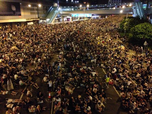 Ce n’est qu’à partir du 29 septembre que les manifestations se sont étendues au-delà de Hong Island, centre financier et politique de la ville, pour atteindre Kowloon sur la rive d’en face. Dans la nuit du 29 septembre, Mong Kok, quartier le plus densément peuplé du territoire, est paralysé. Les manifestants se pressent au croisement entre Argyle Street et Nathan Road afin d’immobiliser la principale artère Nord/Sud de Kowloon. Puis c’est au tour du quartier – jadis populaire, aujourd’hui touristique – de Tsim Sha Tsui, d’être bloqué par l’occupation, à partir du 1er octobre, du croisement entre Canton Road et Haiphon Road.