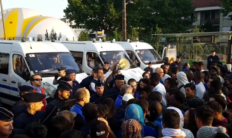 3. 3. Evacuation des campements devant le camp de la Chapelle, le 7 juillet 2017 (Capture d’écran, Sam Smith JRI, https://www.youtube.com/watch?v=_MDIKcWA4EE).