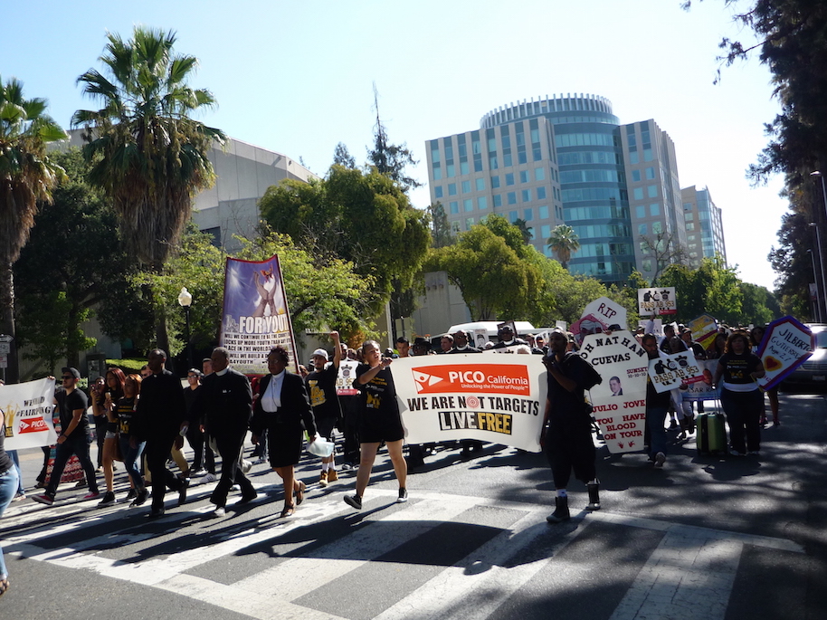 On peut néanmoins considérer qu’il existe une forme de division du travail entre le community organizing et Black Lives Matter. La fenêtre d’opportunité qu’a ouverte Black Lives Matter a servi les campagnes précises menées par les organisations communautaires. Ainsi, une campagne sur le contrôle au faciès et de documentation du profilage racial en Californie (voir Fig. 3), menée depuis longtemps par des organisations communautaires, a récemment abouti au vote à l’échelle californienne d’une loi qui oblige les polices à faire ce recensement. Cela montre comment un autre mouvement social peut ouvrir des opportunités politiques pour des organisations qui mènent un travail de revendications souterrain, à plus long terme.