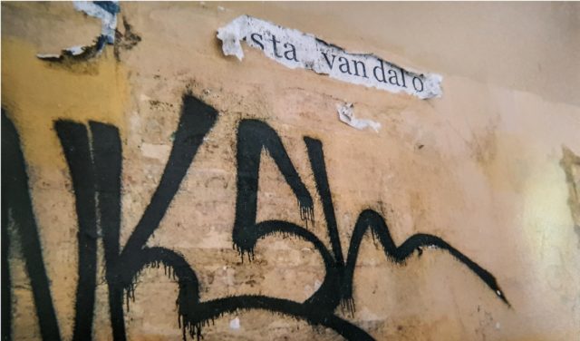 Couverture : Tags et affiches dans une rue dégradée du centre-ville de Florence (Dall’aglio, 2019).