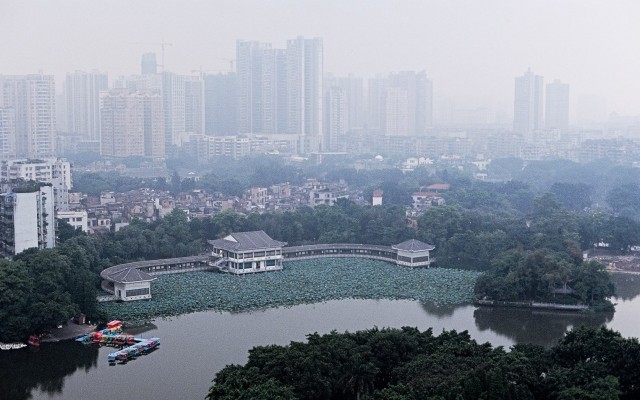 Vue de Canton depuis le parc de Liwanhu, situé dans le « vieux Canton », à l’Ouest de la ville.