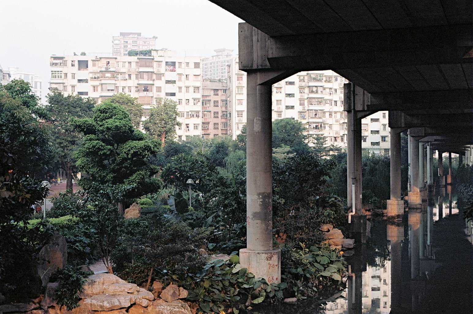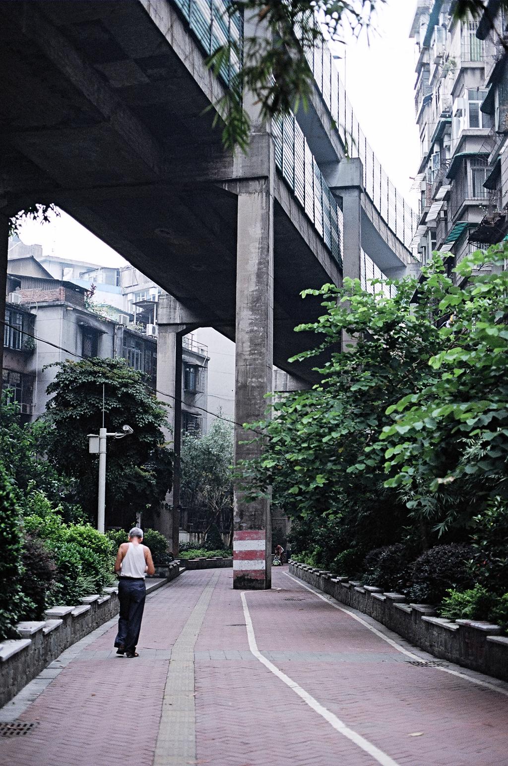 Canton compte de nombreuses routes surélevées. Dans le quartier de Yuexiu, sous la route surélevée de Donghaoyong, une promenade a été aménagée par endroits. On l’appelle « the Green Walk ».