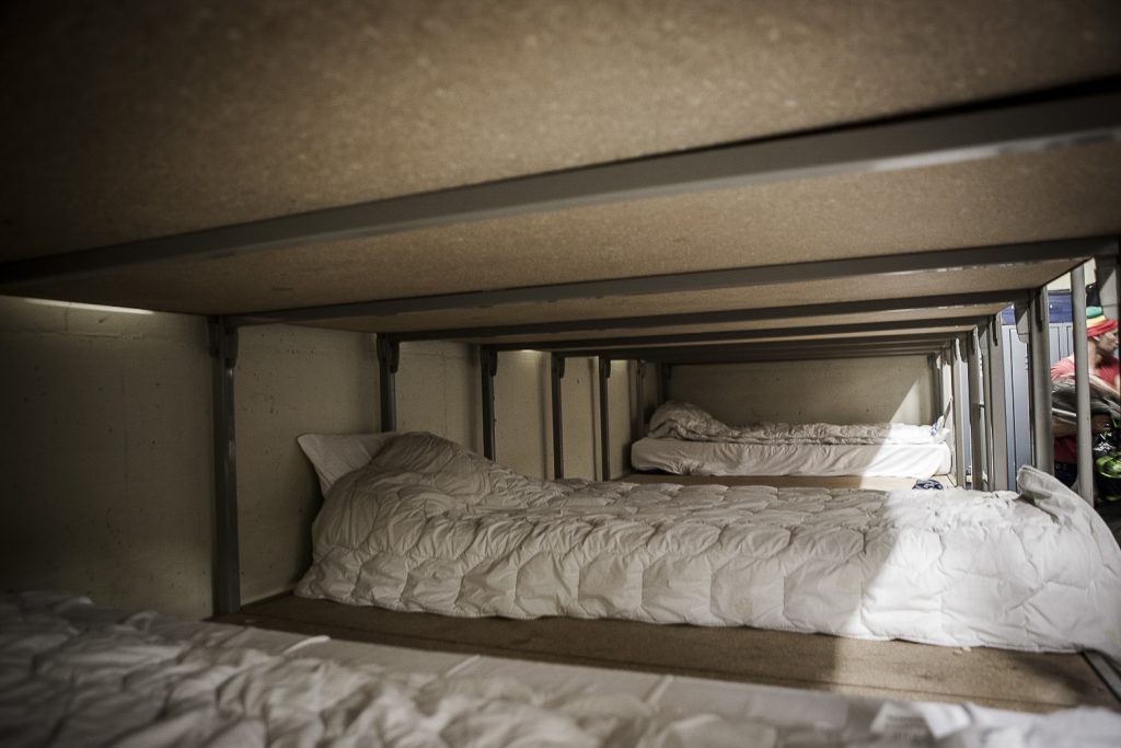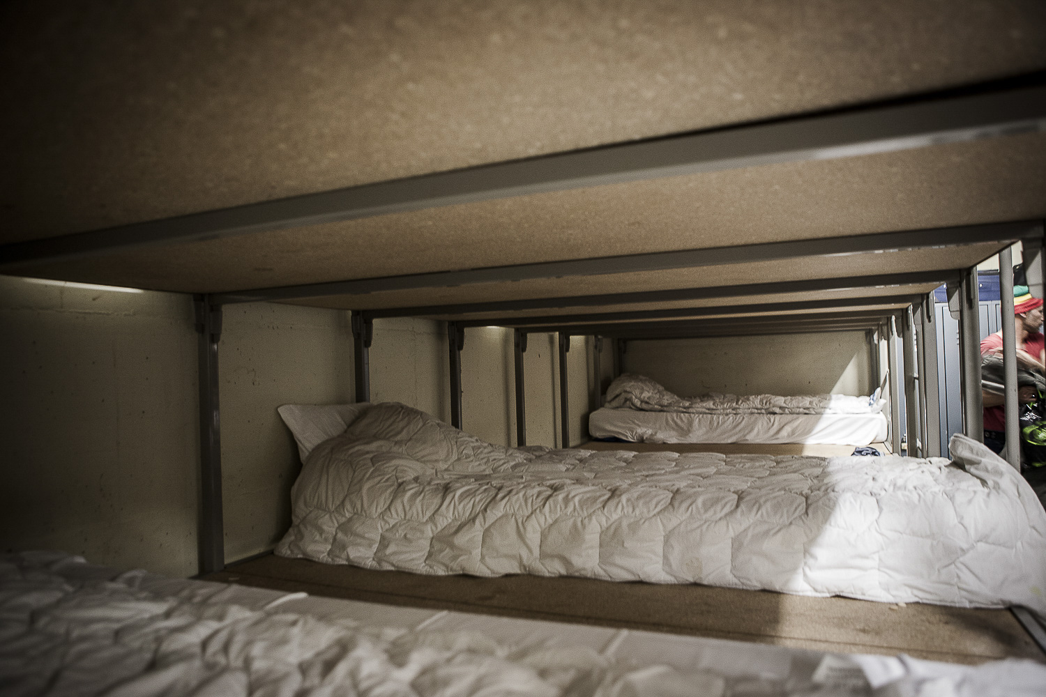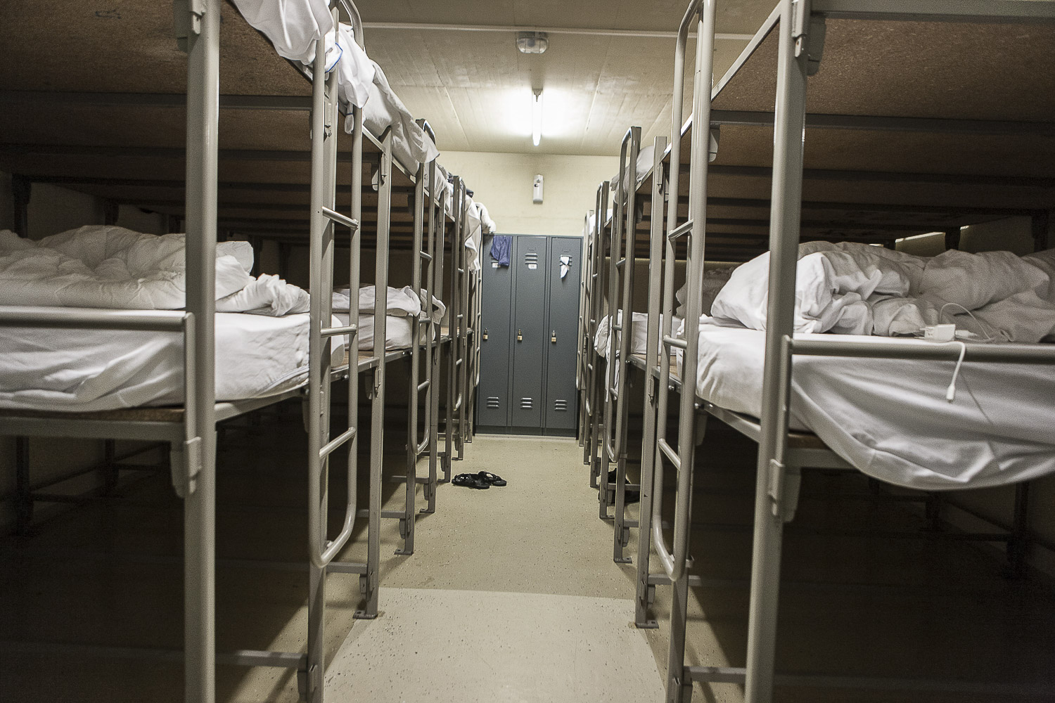 3. Le dortoir est constitué d’une série de lits superposés collés les uns aux autres. L’intimité dans la chambre est extrêmement limitée et le sommeil dérangé par le bruit ininterrompu de la ventilation. L’allumage et l’arrêt de la lumière a lieu à des horaires précis, gérés par le personnel du centre.