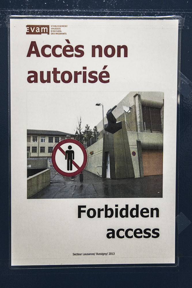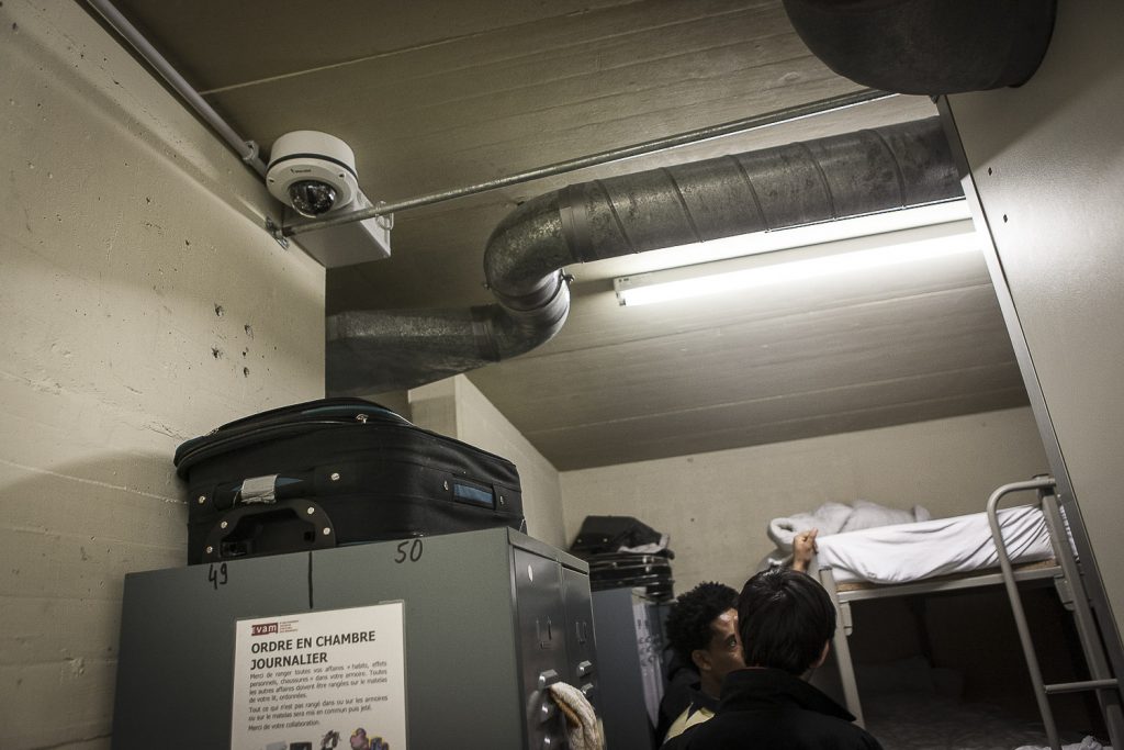 Le travail présenté ici accompagne l’article de Cristina del Biaggio et Raphaël Rey. Il a été conçu à l’occasion d’un reportage sur l’hébergement dans des abris de la protection civile réalisé avec Daphné Gastaldi pour RFI (13.05.2015). Lors de la préparation du reportage, nous avons demandé à l’Hospice général l’autorisation de pouvoir accéder à ces abris antiatomiques sur le Canton de Genève. L’accès nous a été refusé par l’Hospice, au prétexte de préserver le respect de la vie privée des résidents. En revanche, l’ÉVAM, Etablissement vaudois d’accueil des migrants, nous a permis d’avoir accès à sa structure et de pouvoir documenter davantage ces mondes des souterrains contraints qui font le quotidien de la ville pour ces migrants. Les photographies présentées ici montrent la structure souterraine de Bussigny (Vaud), et permettent de retracer le parcours quotidien des migrants dans ces lieux un peu à part.