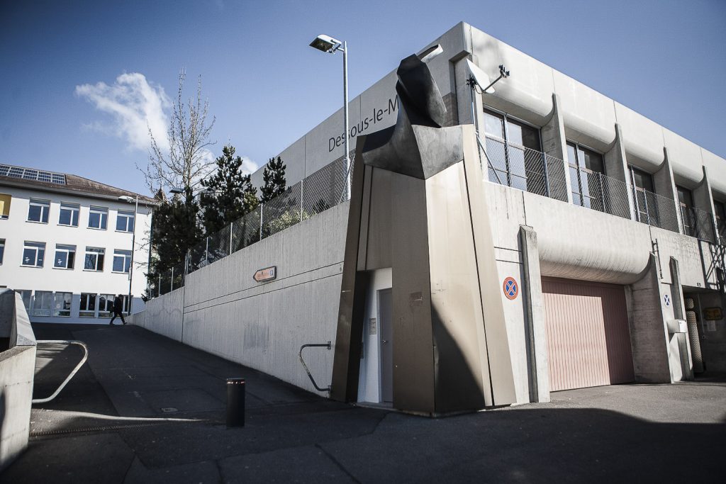 8. L’abri de protection civile vu de l’extérieur. La structure dans laquelle sont hébergés les exilés est située au centre ville de Bussigny, dans le Canton Vaud. L’entrée de la structure est située à côté de l’entrée d’une école.