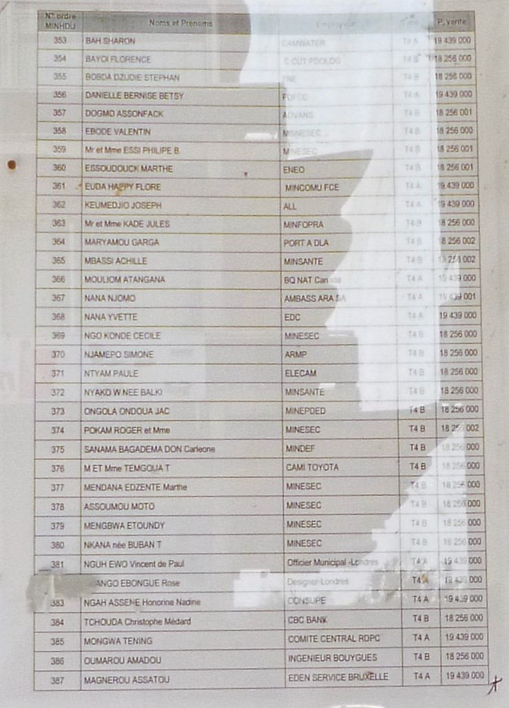 5. Communiqué officiel des attributions de logements à Olembé, affiché au siège de la SIC (M. Jourdam-Boutin, 2016).