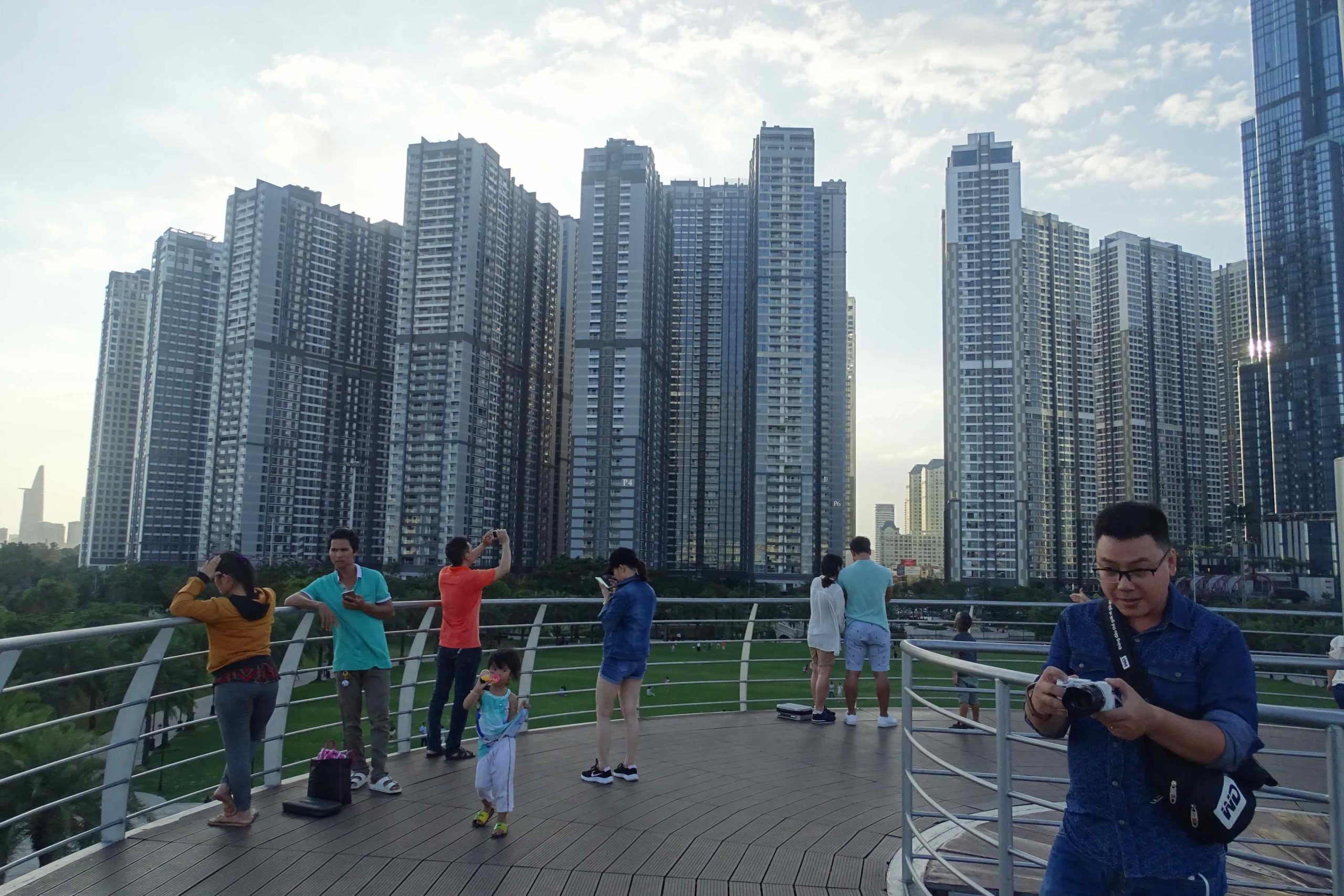 2. Les tours résidentielles du projet Vinhomes Central Park, mise en valeur depuis un belvédère panoramique à Ho Chi Minh Ville (M. Gibert-Flutre, 2019)
