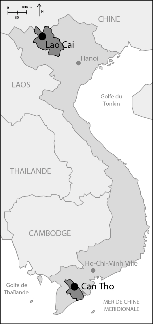 1. Localisation de Lao Cai et Can Tho (Clara Jullien, 2020)