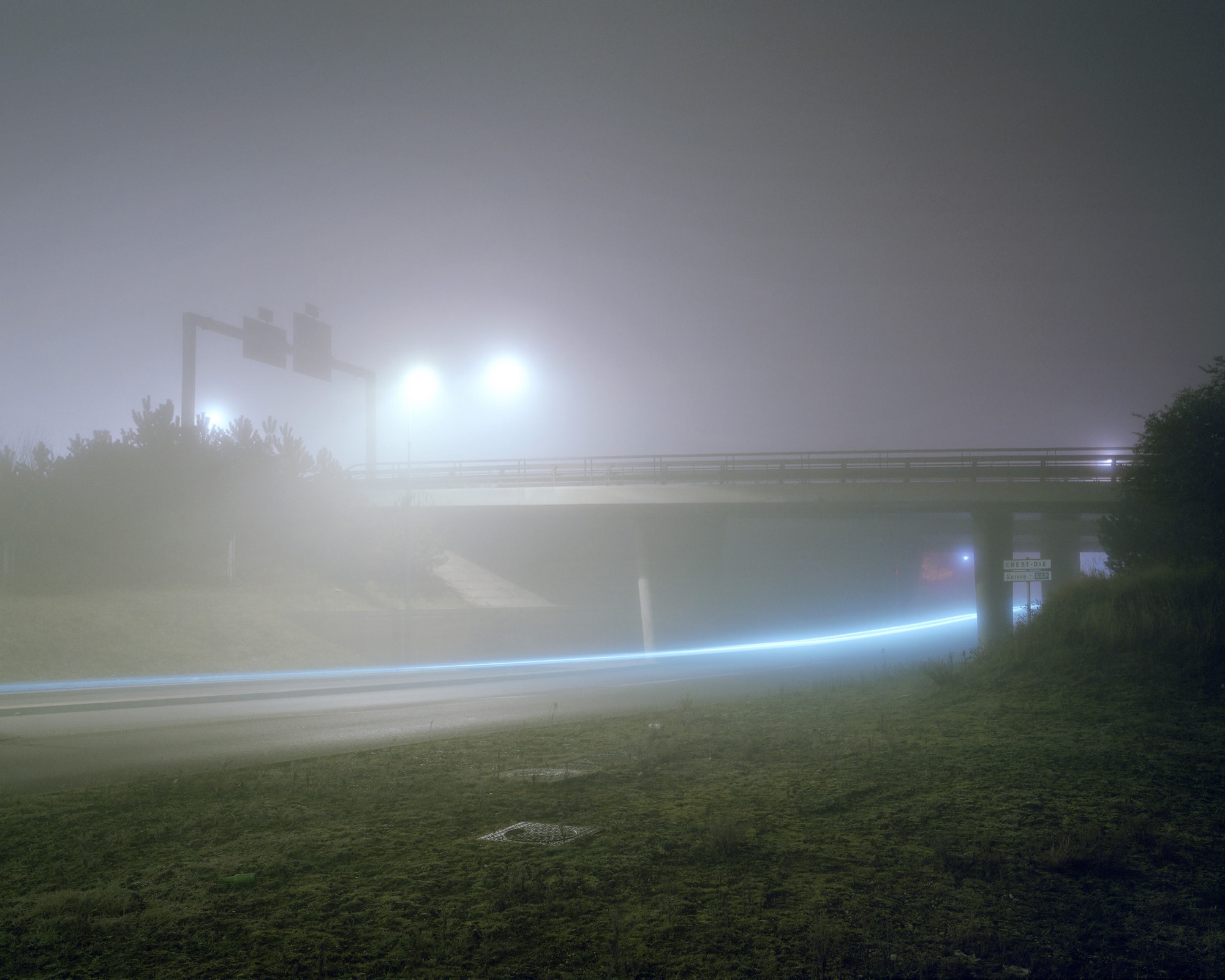 Sur une période de trois ans, entre 2010 et 2013, je me suis rendu à plusieurs reprises aux abords de l’« Autoroute du soleil », à la limite entre l’autoroute A7 et un secteur résidentiel de Valence. Après avoir travaillé sur des zones urbaines périphériques, je voulais me concentrer sur la notion de frontière dans une zone d’activité en développement. Je cherchais une forme d’esthétisme dans ces lieux de passage où personne ne s’arrête.